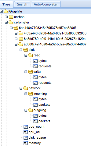 工作示例。指标被发送到 Graphite 的格式为ceilometer.project_id.resource_id.metric