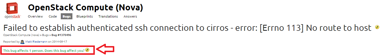 - 将 'openstack-ops' Launchpad 团队订阅到该错误。